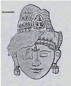 Bagian atas terdapat prasasti dengan huruf Devanagari yang terpahat melintang melewati kepala.