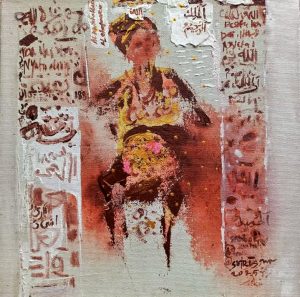 Saya justru terpukau lada lukisan lain. Seorang perempuan yang tengah beribadah. Dalam pengamatan sekilas, tak sulit kita mengenali itu sebagai Simbok. Ada yang berbingkai tulisan Arab, ada yang menghadap samping dengan pesan Ampun yang menusuk batin bagi yang melihat dan membacanya. Apakah ini merupakan prasasti totalitas sutrisno (cinta yang indah) dan pengabdian Ampun kepada Simbok-nya?