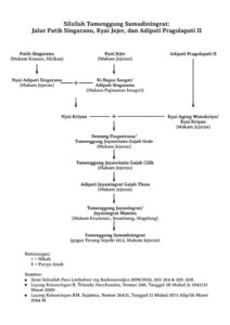 Mudah sekali melacaknya. Bila diurut dari atas, urutan nasab KRT Sumadiningrat adalah sebagai berikut: Kyai Ageng Ngerang → Kyai Ageng Ngerang II → Kyai Ageng Ngerang III → Kyai Ageng Penjawi → Kyai Pragolapati I → Kyai Pragolapati II → Kyai Wonokriyo/Kriyan → Demang Puspotruno I/ Demang Jowinoto/Tumenggung Gajah Gede → Demang Puspotruno II/Tumenggung Gajah Cilik/Tumenggung Jowinoto → Demang Jowinoto/Adipati Jayaningrat/Gajah Tleno → Tumenggung Jayaningrat I → Tumenggung Sumadiningrat (Agustriyanto 2018; Sejarah Ratu n.d., 58–60; Serat Salasilah Para Loeloehoer Kadanoeredjan 1899, 201–8).