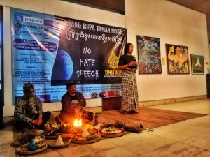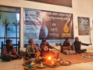 Sebelumnya Ketua PKSB Taman Sesaji, Hangno Hartono, menjelaskan latar belakang digelarnya Ruang Rupa Taman Sesaji. “Ini sebetulnya dilatar belakangi keprihatinan kami terkait banyaknya misinformasi, disinformasi dan malinformasi menyangkit sesaji. Ndelalah, gagasan kami disambut oleh Unesco sehingga lahirlah gerakan kebudayaan Taman Sesaji”, katanya didampingi Eko Hand selaku Sekretaris PKSB Taman Sesaji.